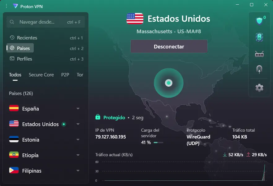Además, utiliza el moderno protocolo de tunelización WireGuard, que no solo garantiza conexiones altamente seguras, sino que también permite velocidades más rápidas, lo que convierte a Proton en la VPN gratuita más rápida en la actualidad.
